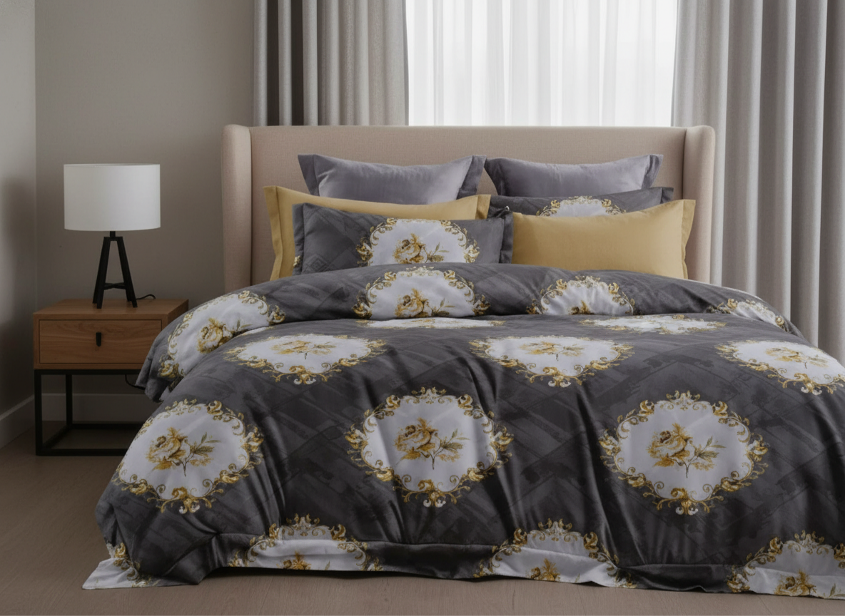 Upgrade your bedroom with this premium king size bedsheet set from our designer collection. Made with soft and breathable fabric, it provides maximum comfort and a stylish look.