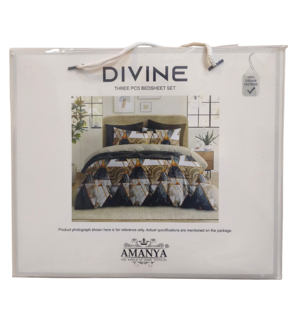 Upgrade your bedroom with the Amanya Divine 3-piece bedsheet set. Designed with a modern and elegant pattern, this set offers both style and comfort at an affordable price.