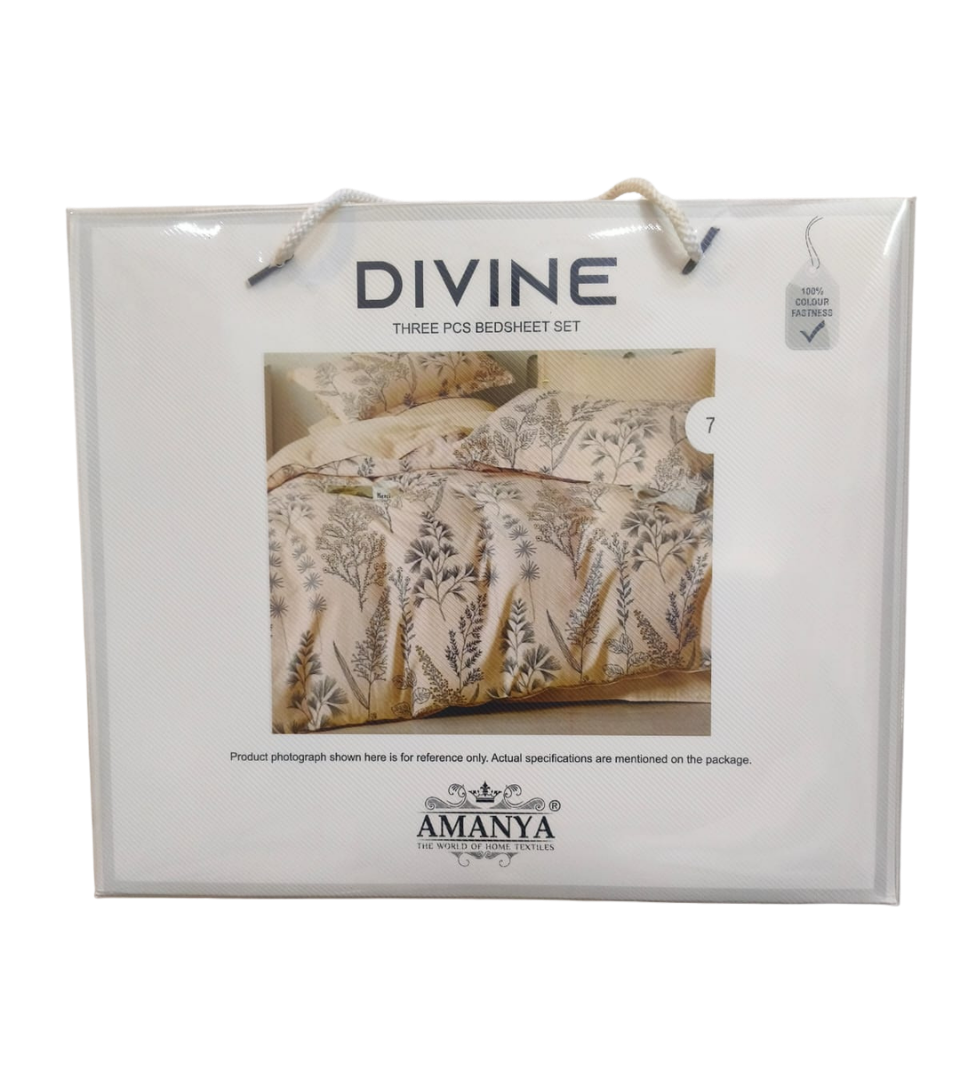 Upgrade your bedroom with the Amanya Divine 3-piece bedsheet set. Designed with a modern and elegant pattern, this set offers both style and comfort at an affordable price.