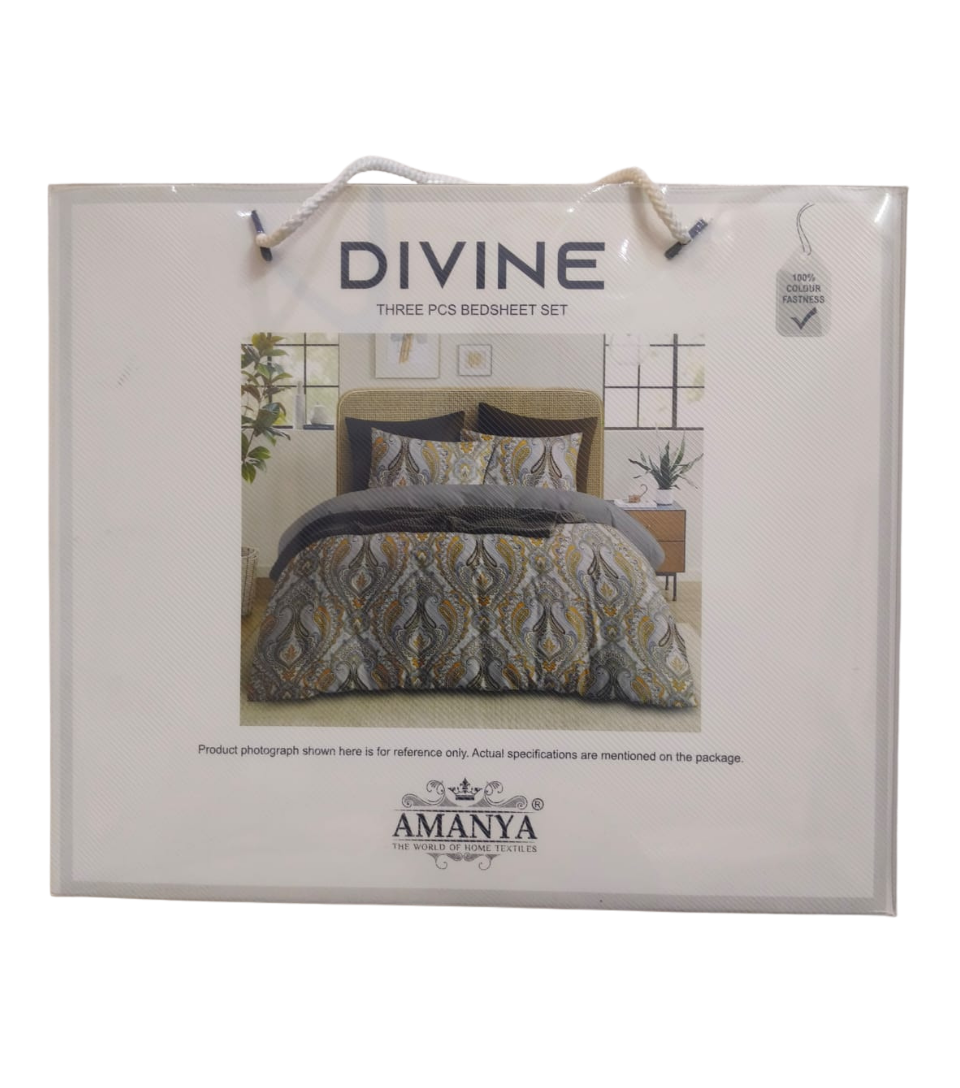 Upgrade your bedroom with the Amanya Divine 3-piece bedsheet set. Designed with a modern and elegant pattern, this set offers both style and comfort at an affordable price.