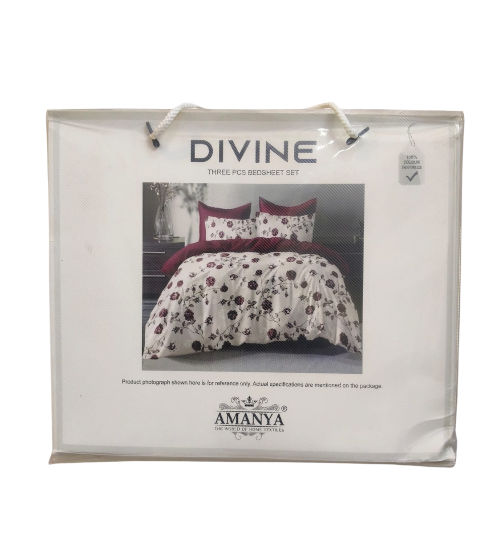 Upgrade your bedroom with the Amanya Divine 3-piece bedsheet set. Designed with a modern and elegant pattern, this set offers both style and comfort at an affordable price.