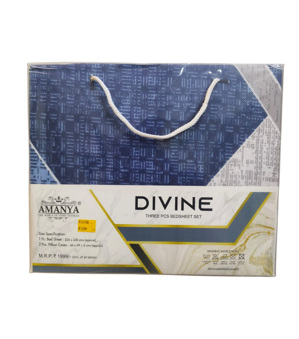 Upgrade your bedroom with the Amanya Divine 3-piece bedsheet set. Designed with a modern and elegant pattern, this set offers both style and comfort at an affordable price.