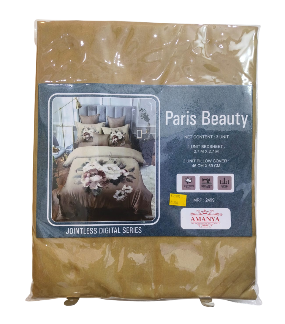 Upgrade your bedroom with the elegant Paris Beauty Jointless Digital Series Bedsheet Set. Designed with premium digital and 3D printing technology, this bedsheet brings a modern, vibrant look with seamless (jointless) finishing for a luxurious feel.