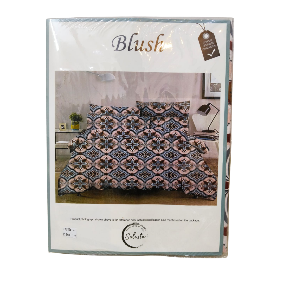 Transform your bedroom with the timeless elegance of the Solesta Blush bedsheet set, featuring a rich peach-toned geometric and floral design. The intricate medallion motifs in shades of peach, blue, beige, and black bring a regal charm to any space. Crafted from soft cotton, this set offers breathable comfort and a smooth finish that suits both traditional and contemporary interiors.