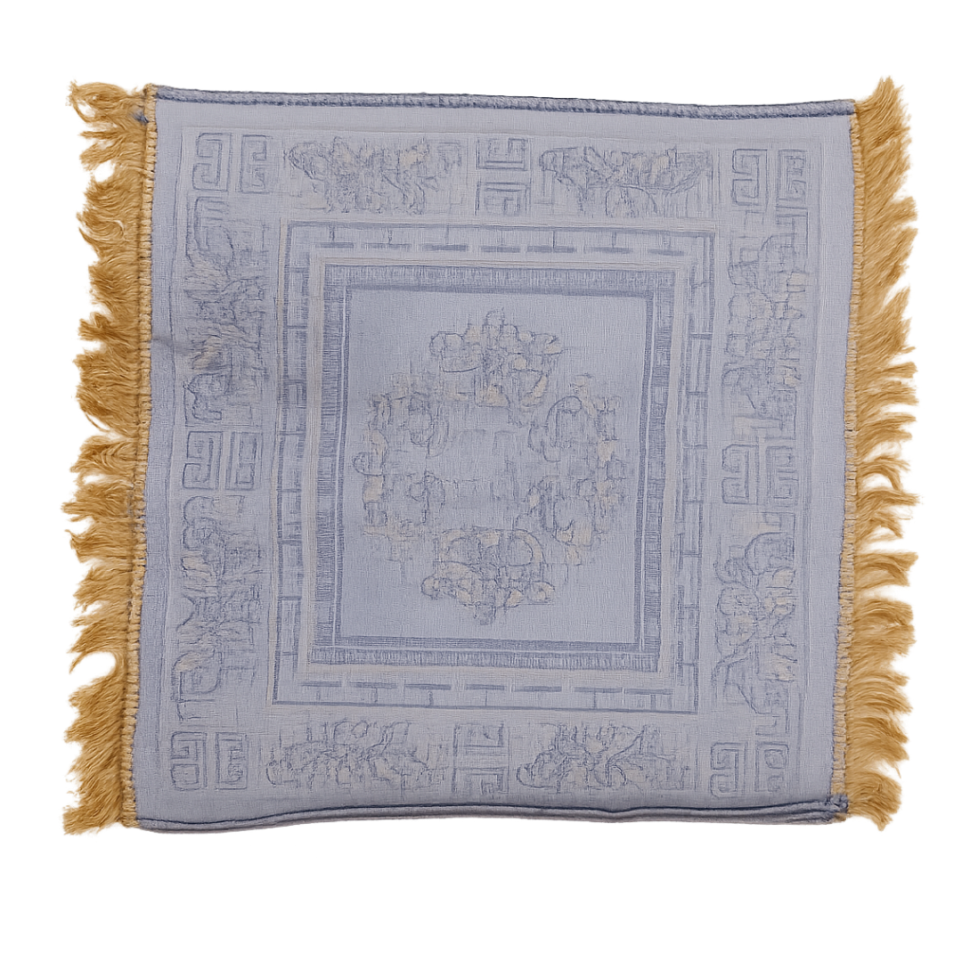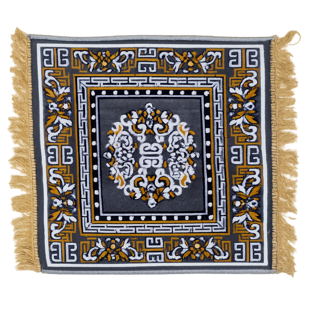 Elevate your pooja space with this elegant Blue-Grey Pooja Aasan (Prayer Mat). Featuring intricate floral and geometric motifs woven into a soft blue-gray base, this mat brings a serene and refined touch to your spiritual rituals, meditation sessions, and festive ceremonies.